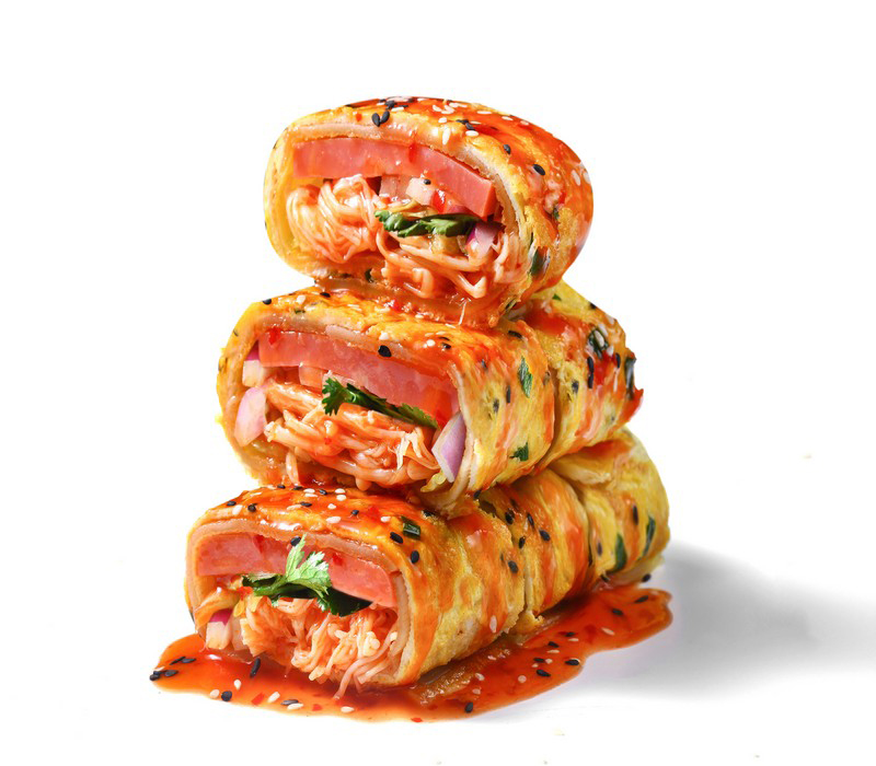烤冷面主要是冷面經(jīng)過(guò)煎烤柔軟后,可以添加雞蛋、香腸、培根、火腿等各種各樣的食材,然后涂上自己喜歡的醬料,切成斷,即可食用。